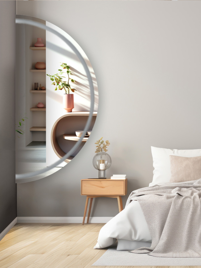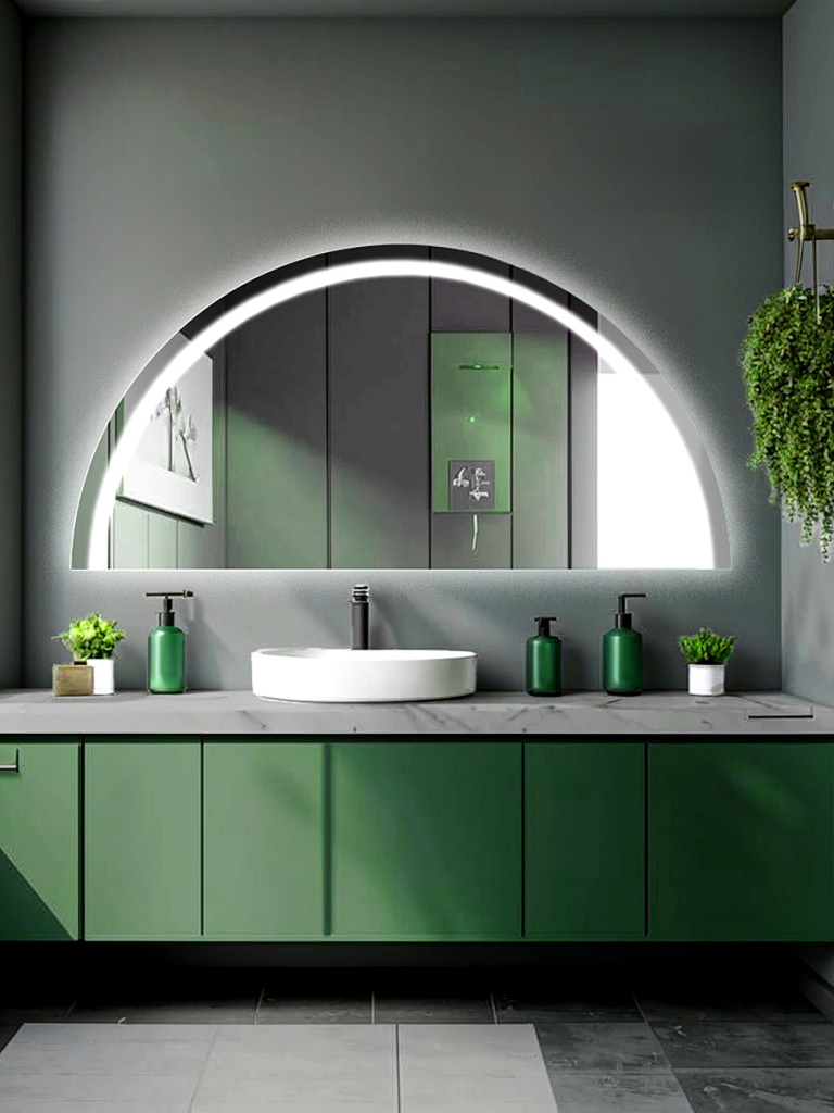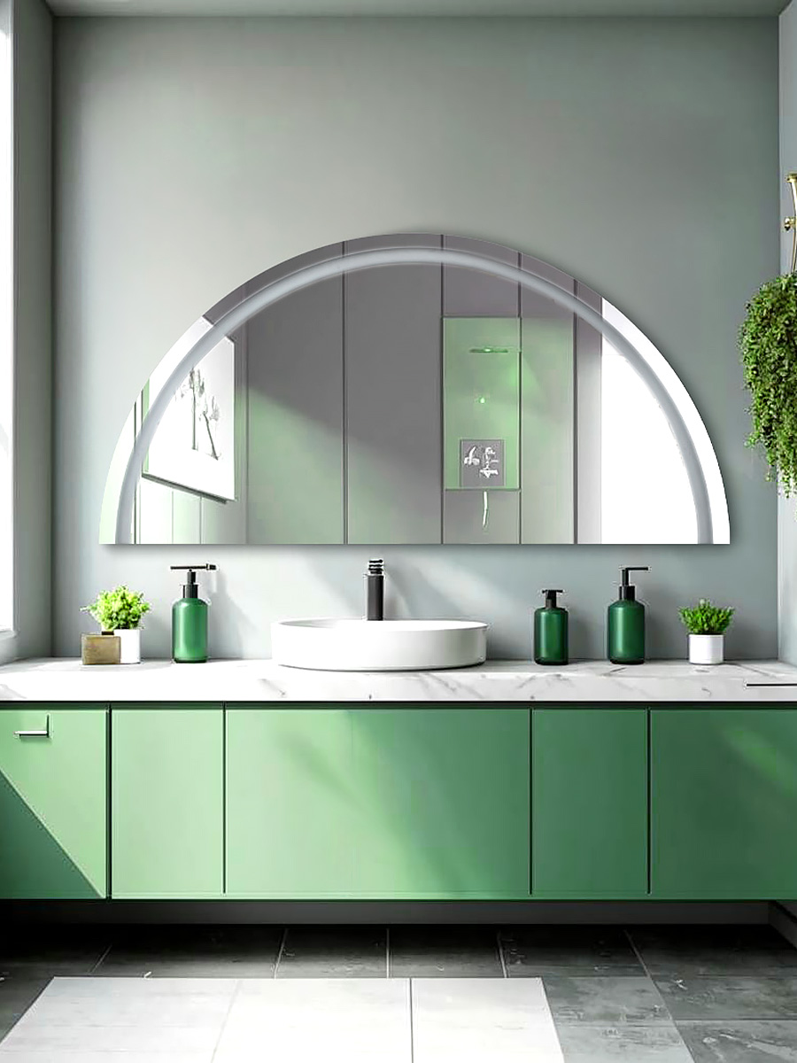 классическое зеркало полукруг с лицевой подсветкой.Для интерьеров в стиле: минимализм, современный, сканди , лофт. )