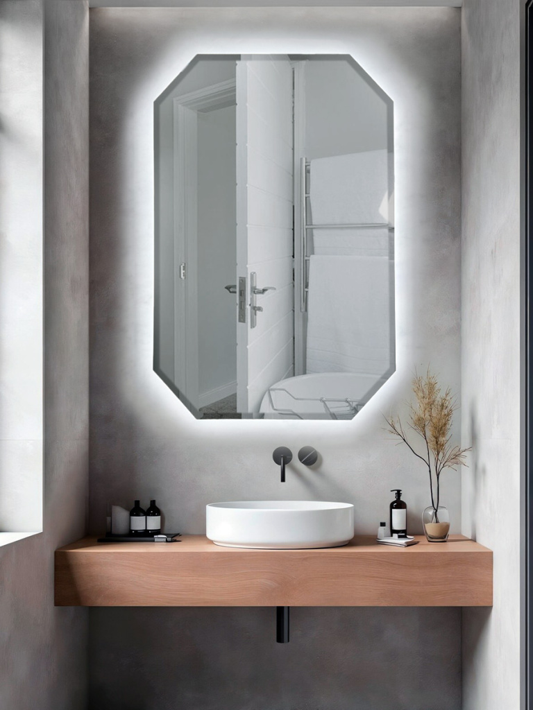 классическое зеркало восьмиугольник с подсветкой.Для интерьеров в стиле: минимализм, современный, сканди , лофт. )